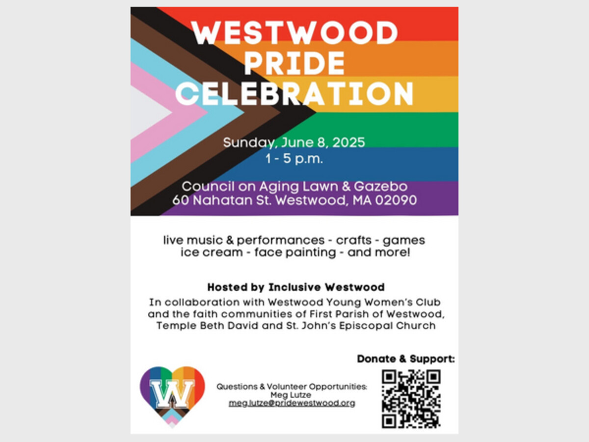 The third annual Westwood Pride Day event is scheduled for June 8, 2025, from 1-5pm at the Council on Aging lawn and gazebo located at 60 Nahatan Street.
