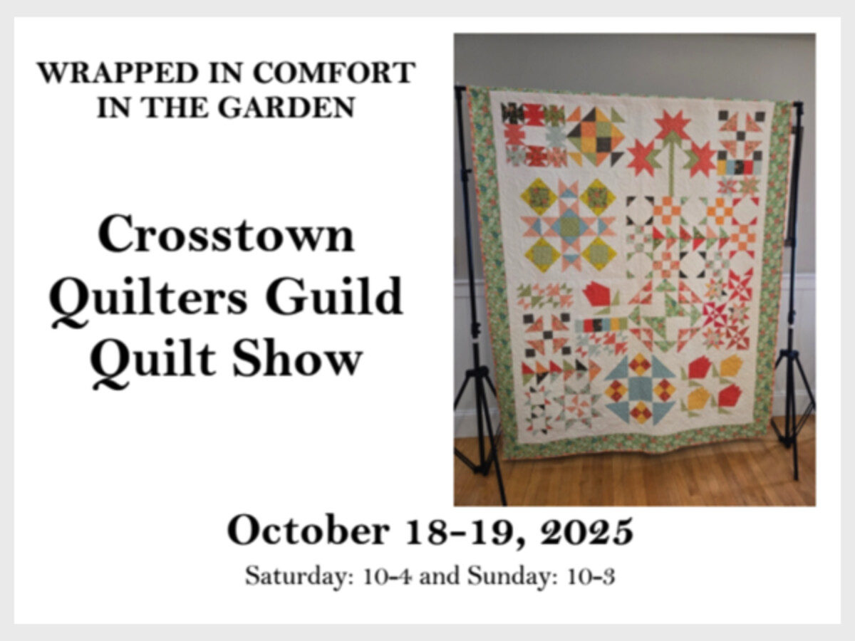 Local quilters from the south shore and surrounding towns will be among those represented in the upcoming Crosstown Quilters Guild Quilt Show “Wrapped in Comfort in the Garden” on the following dates and times: