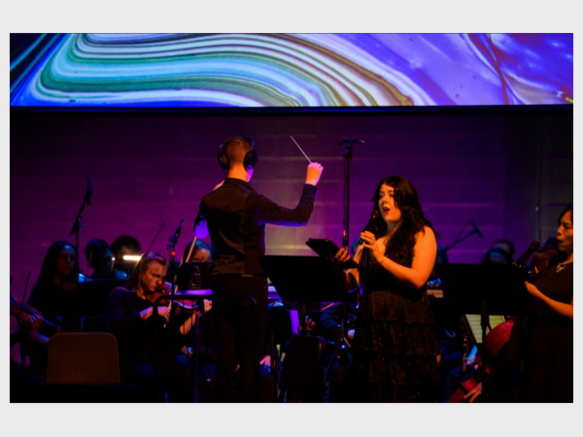 Immersive planetarium visuals, created by Ross Barros-Smith, Media Technology Artist at the Christa McAuliffe Center, powerfully connect us with the musical score.