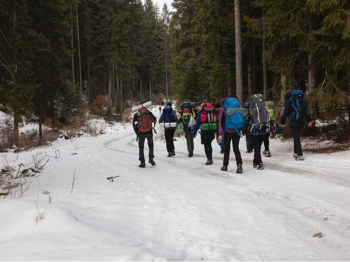 Photo by Francesco Paggiaro from Pexels. Group of hikers in the snow.