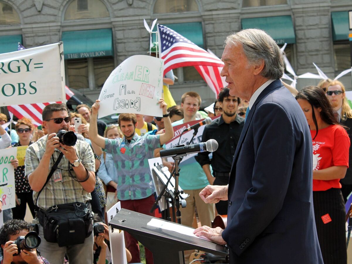 Photo of Senator by Karen Murphy from Flickr. Ed Markey speaks at a rally after testifying in favor of proposed climate regulations