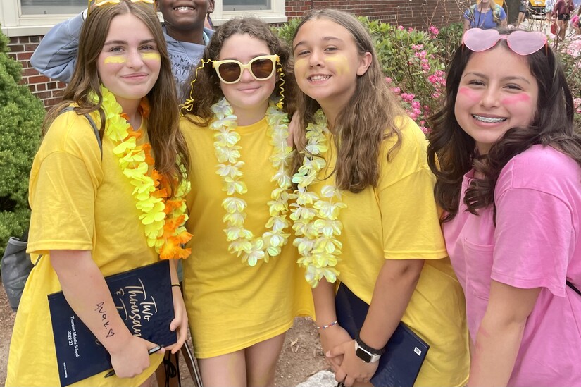 Photo courtesy of Westwood Public Schools. At Thurston Middle School, students have leis around their necks as they hold their yearbooks.For the many students who dutifully came for the half-day, there were yearbooks (and in some cases, tee shirts) to autograph and circulate among friends; backpacks to stuff a final time with artwork, paper, and keepsakes from class; farewells to classmates, dedicated teachers and staff; and then a rush out the door - with shouts, cheers, and/or applause - and off to celebratory activities.