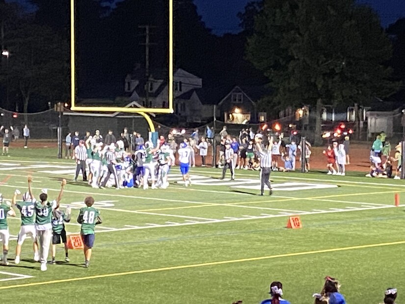 Photo by John Aram.On Friday September 22, 2023, the Westwood High School Wolverines faced the Quincy High School Presidents. Westwood is the first to score, beginning what will be the Wolverines' dominating first half.