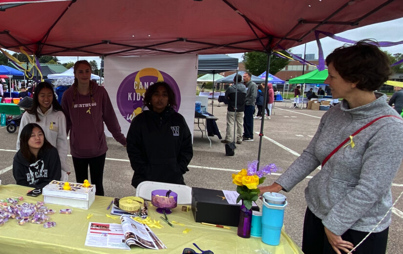 Photo by Westwood Minute/Darlene Wong Cancell.Members of the Westwood High School club, Cancer Kids First Westwood, wear yellow ribbons to raise awareness for their cause.