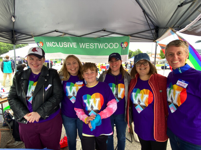 Photo by Westwood Minute/Darlene Wong Cancell.At Inclusive Westwood's tent, (from left to right) Heather Ford, Meg and PJ Lutze, Shannon Mastropoalo, Melissa Morabito, and Mandy Taft-Pearman cheerfully greet visitors.