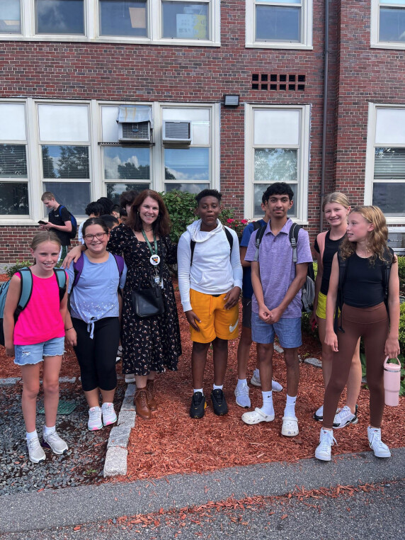 Photo courtesy of Westwood Public Schools. Erin Banty (third from left) gathers with a group of Westwood Public Schools students.A native of Milton, Massachusetts, Banty attended Milton Public Schools through eighth grade before enrolling at Notre Dame Academy in Hingham for high school. After receiving her bachelor’s degree in Child and Family Development from Syracuse University, she went on to earn a master’s degree in Education from Lesley College and is currently completing a master’s degree in Education Leadership through the Education Leadership Institute.