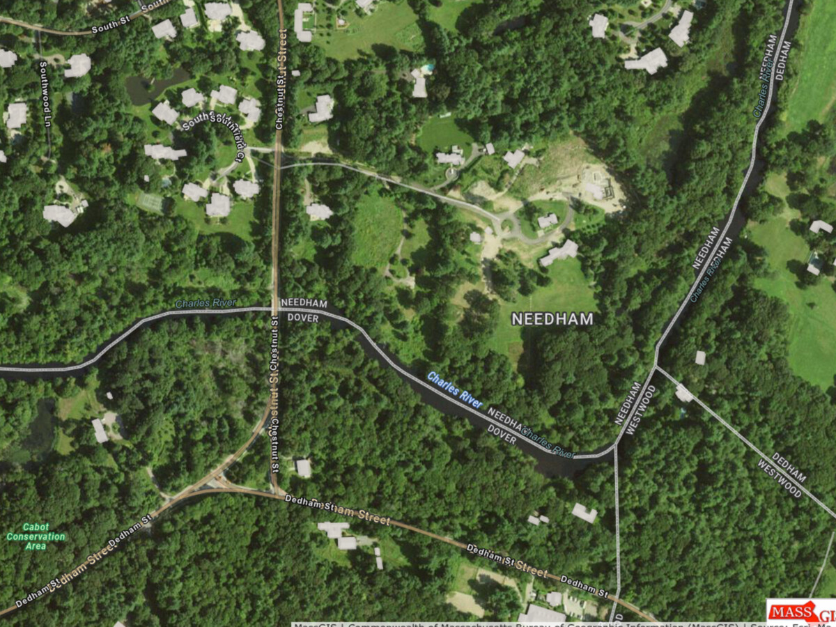 An unknown volume of Pipe-Type Cable (PTC) transmission fluid appears to have been released from an underground Eversource transmission pipe in Dover, on the south side of the Chestnut Street bridge that crosses the Charles River, and was discovered by Eversource on Saturday, December 23, 2023, according to a notice from Eversource which Dover Police and Needham Police each separately posted to Facebook on Tuesday, December 26th. It was discovered by Eversource when “[t]he PTC fluid was observed trickling through a crack in the paved roadway,” states the notice.