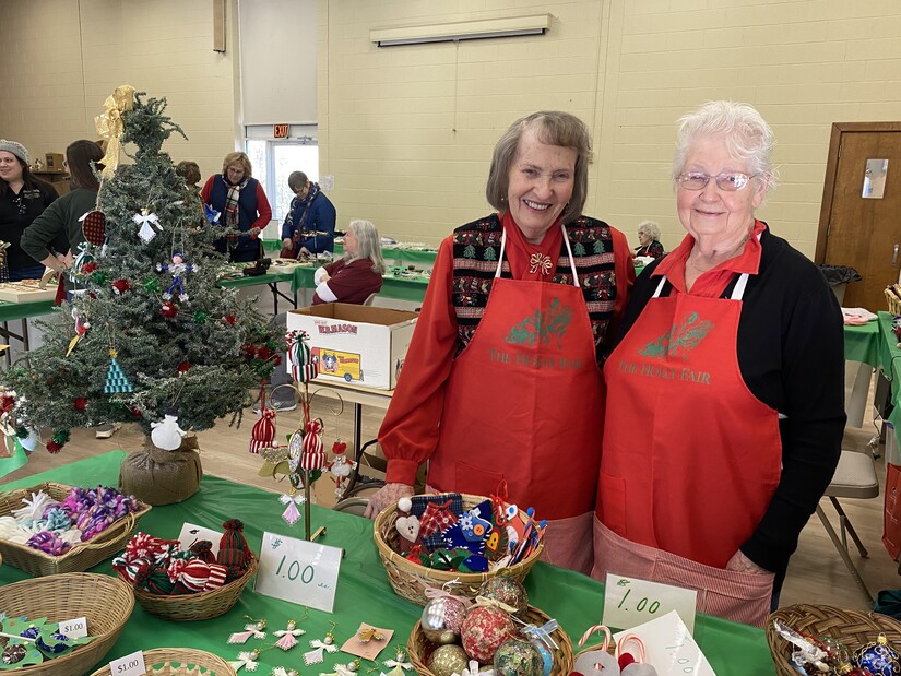 Janet Shepperson, a long-time member of First Baptist, along with friend Marie Chase, staffed a festive dollar table filled with attractive handmade Christmas crafts and ornaments. She noted the camaraderie of preparing for the event with friends. “It’s fun, and we like to be together,” she said.