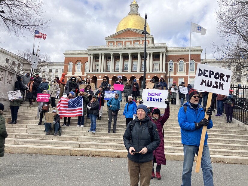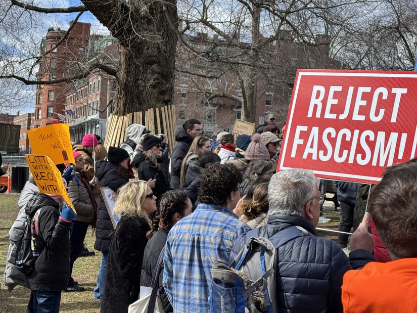 Photo by Claire Galkowski. Thousands reportedly participated in demonstrations in Boston on Women's Day on March 8, 2025.In Dedham, at the same time, other Westwood residents gathered in front of its Tesla dealership, which drew over 100 protesters in its third week.
