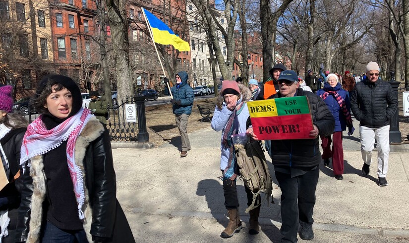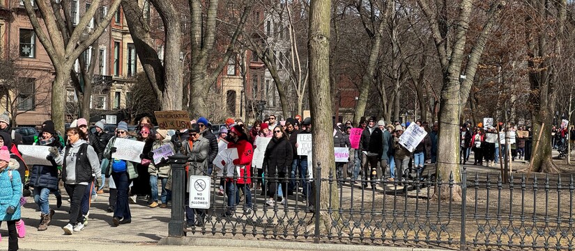Photo by Claire Galkowski. Demonstrators took part in the 2025 Women's Day march in Boston. The day is celebrated internationally every March 8th, to honor women's achievements and advocate for gender equality.The event drew thousands, who gathered at the Boston Common in front of the State House to advocate for reproductive rights, immigrant and LGBTQ protection, to support Ukraine, and to protest against what they view as the wholesale dismantling of government institutions by unelected officials.