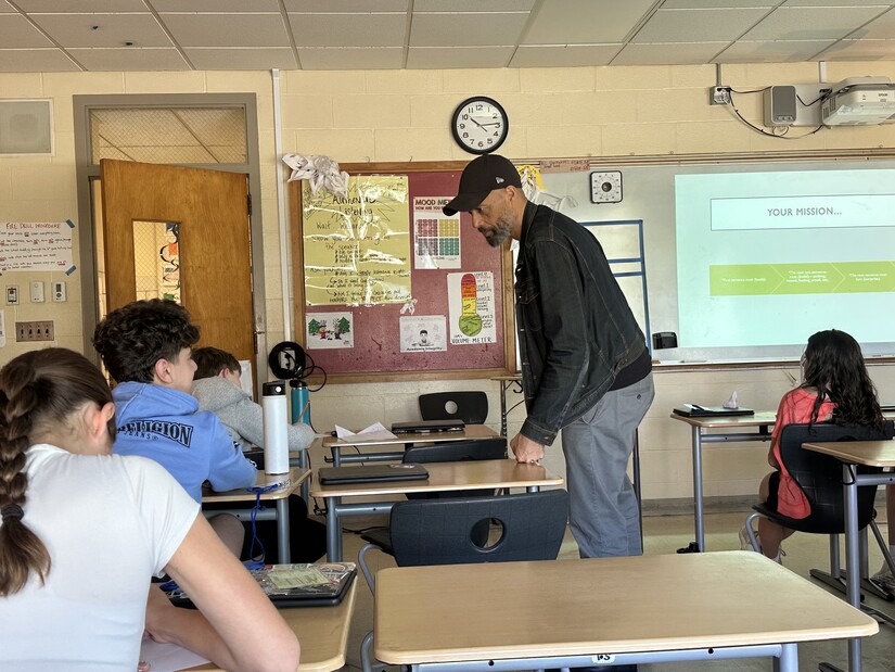 Photo courtesy of Westwood Public Schools. Young Adult Fiction writer, Desmond Hall, shared his expertise on story structure with seventh graders at Thurston Middle School's Writers Conference.As a librarian, I appreciate that students are interacting with authors and learning about the writing process through exposure to a wide range of genres and writing styles,” said Thurston Middle School Librarian Canice Thynne. “Perhaps this makes them see [writing] as something that’s doable. They also get some great writing ideas, because writing can be daunting.”
