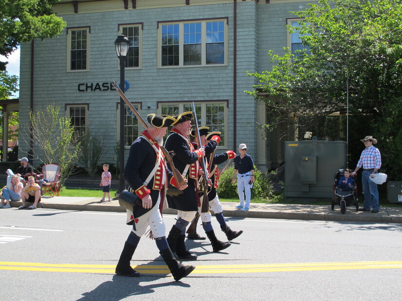Photo by Westwood Minute/Madeleine Mulligan.Four riflemen in Revolution-era outfits were stationed at the front of the procession, stopping occasionally to fire off blasts that resonated down the entire street.