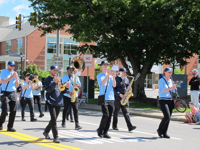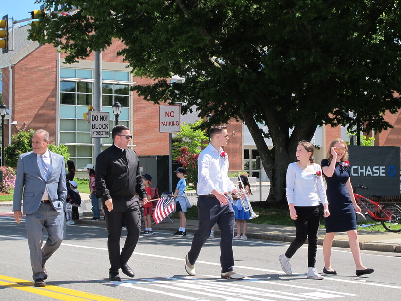 Photo by Westwood Minute/Madeleine Mulligan.Roma Band Boston added a musical flare to the parade, and entertained the crowd with short tunes as a break between the appearances of veterans and scout troops.
