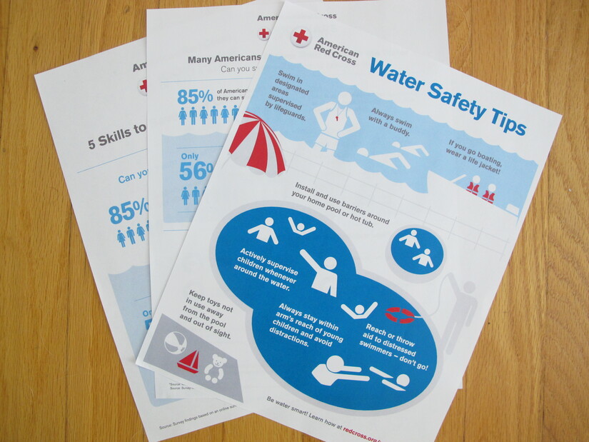 Photo by Westwood Minute/Maddie Mulligan. These handouts of water safety tips are available from Westwood Recreation.To combat drowning rates and water-related injuries that only increase as the weather reaches its peak temperatures, many of Westwood’s own places to cool off are spreading water safety tips for the summer months.