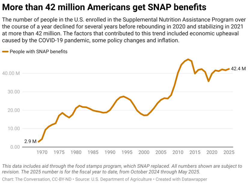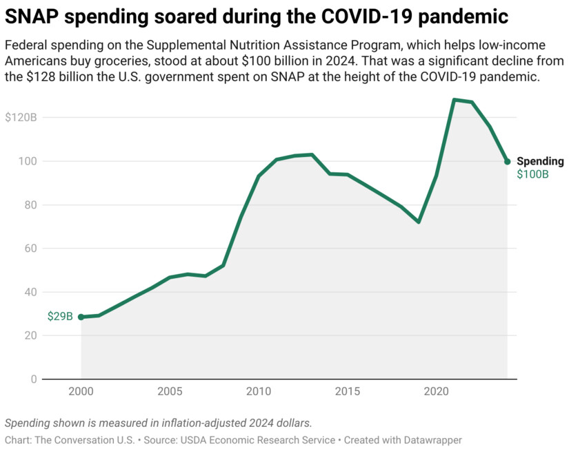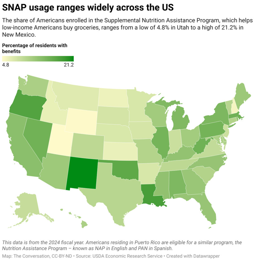 But on Nov. 1, 2025, the federal government halted the flow of funds to states to distribute as SNAP benefits. The Trump administration blames this unprecedented disruption on the federal government shutdown, which began a month earlier. Following multiple court orders, federal officials said they plan to distribute at least a portion of the US$8 billion that’s supposed to flow monthly to the states to cover the costs of the program’s benefits. On Nov. 6, another judge ordered the distribution of all SNAP funds that were due in November.