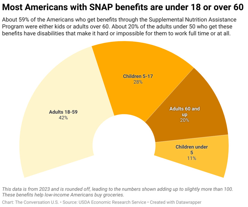 Nearly 60% of Americans enrolled in SNAP are either children under 18 or adults who are 60 or older.