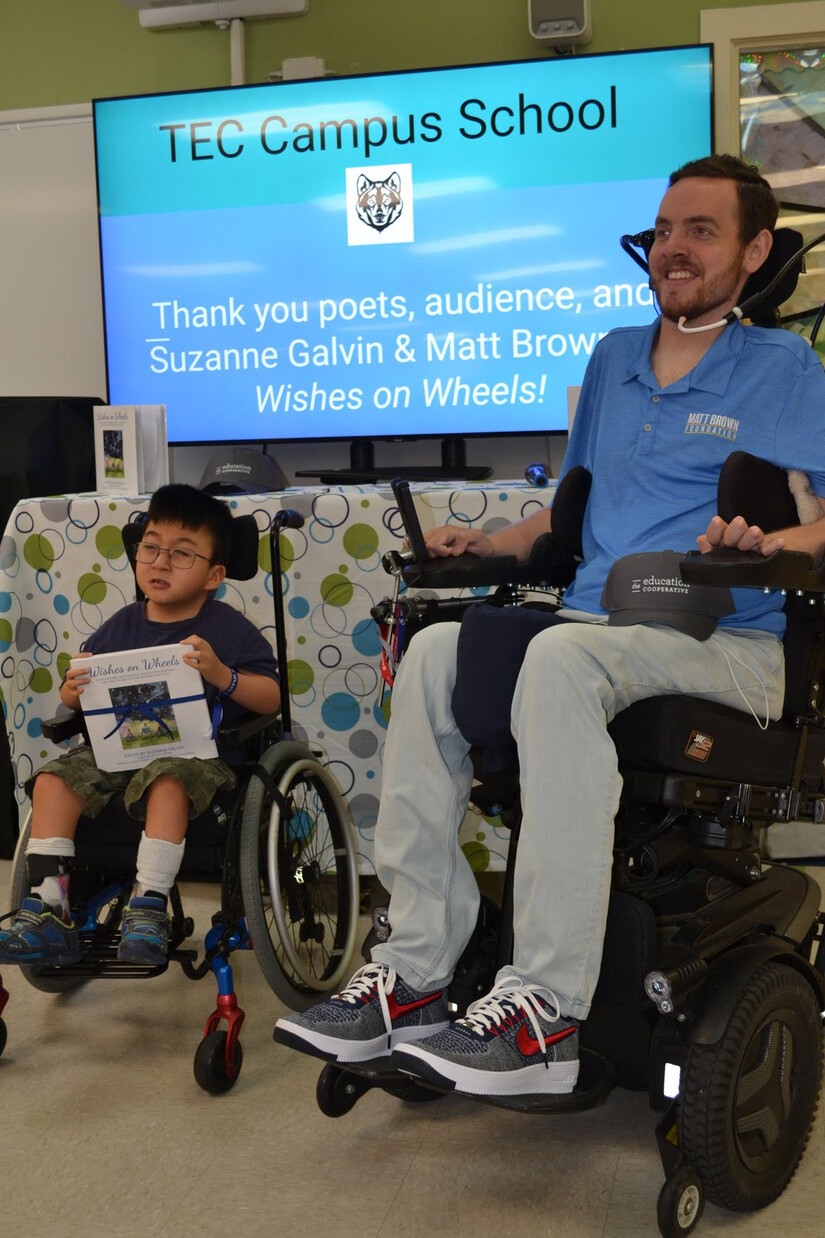 Thai-son and nine of his fellow students, who all utilize wheelchairs for mobility, contributed poems to the newly published book “Wishes on Wheels: Poems of Power and Possibility.” For most of the students, the project not only provided a first opportunity to write poetry and read it aloud, but also their first time speaking or performing before a crowd of their peers.
