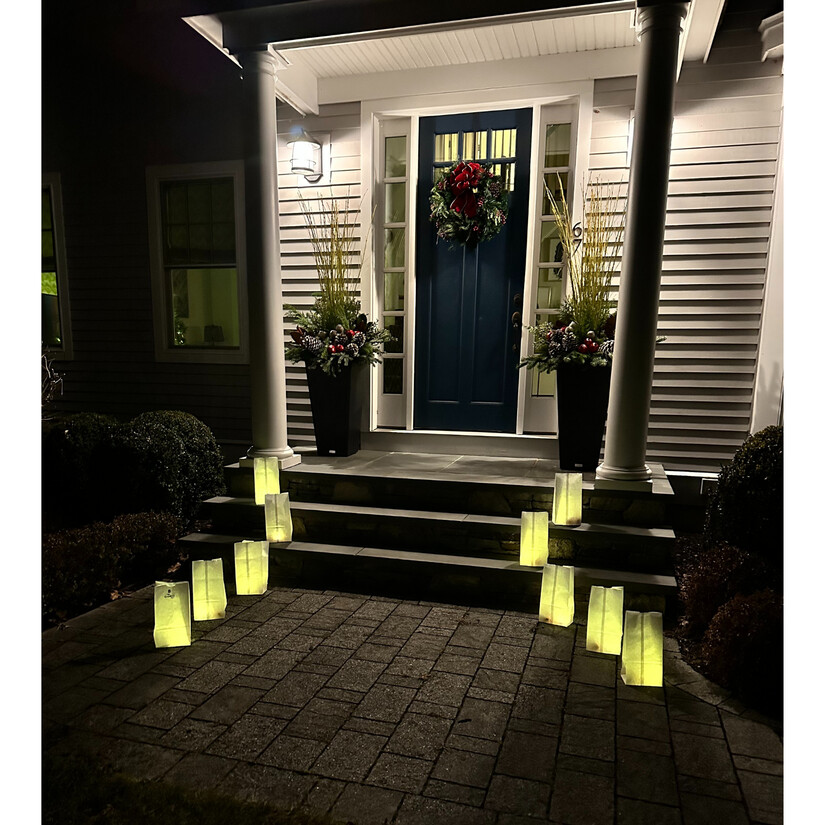 Photo courtesy of Westwood Community Chest. A Luminary Night sign is displayed on the steps to this home, behind a row of lighted luminaries.Funds raised from the sale of Luminary Kits help to fund WCC's confidential grants of temporary financial assistance to Westwood residents in need of a helping hand. For information about applying for a WCC grant, click here.
