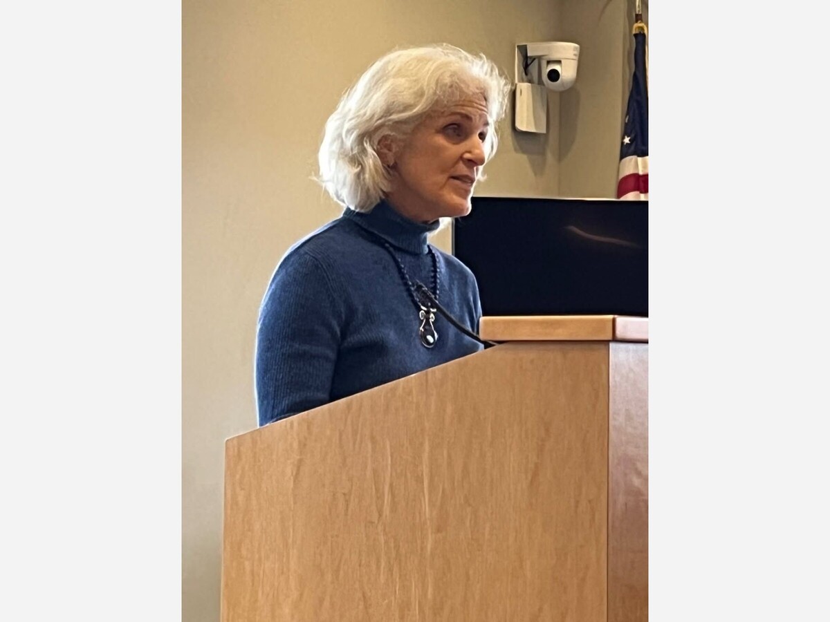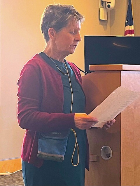 Photo by David Miller. Westwood resident Maria Constantini reads her poem, "Winter Solstice."Michael J. Dwyer read “The Old Woman of Beare,” a vivid retelling of an ancient Irish legend. Kathleen Latham presented “Pantoum for an American Bystander,” a politically charged poem responding to recent clashes in Minneapolis and crafted in the demanding pantoum form. Maria Costantini read “Winter Solstice,” a reflective meditation on season and change. Youth Poet Laureate Elizabeth Lowney shared “Snowfall,” while current Youth Poet Laureate Charles Goodman read “The Oracle,” offering a striking contrast in voice and perspective.