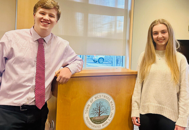 Photo by Lynne Viti. Westwood Teen Poet Laureate Charles Goodman with his predecessor, Elizabeth Lowney (2024-25) shared their poems, "The Oracle" and "Snowfall," respectively, at a poetry program in Westwood on January 11, 2026.The program was hosted by New England Poetry Club Program Chair David P. Miller and NEPC board member Lynne Viti, who welcomed the poets and audience and underscored the club’s long-standing commitment to fostering poetry in the region.