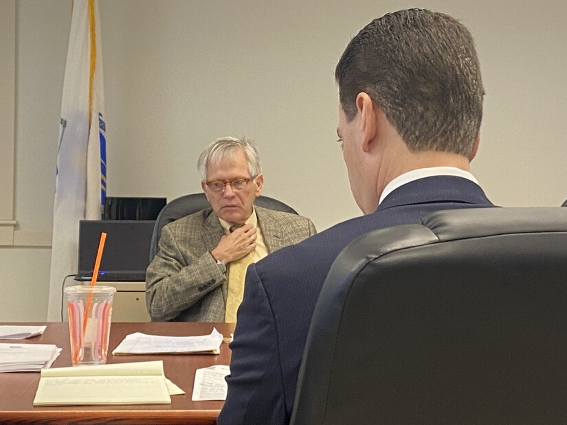 Photo by Westwood Minute/Darlene Wong Cancell. Bolton Police Chief Donald Murphy provided direct testimony regarding the events of February 12, 2025, when he was a lieutenant with the Westwood Police Department.