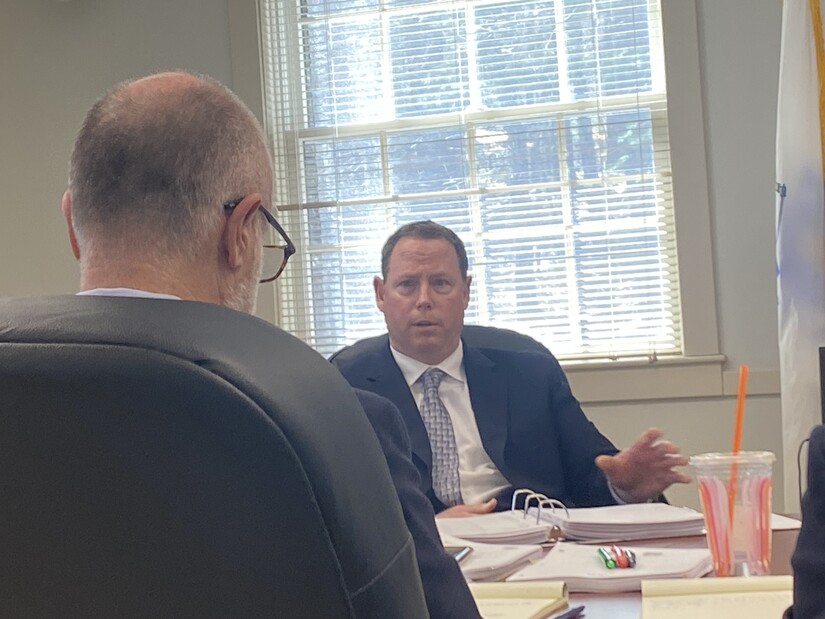 Photo by Westwood Minute/Darlene Wong Cancell. The hearing officer and Westwood Police Chief Jeffrey Silva sit across from one another at the March 24, 2026 hearing.It was the Town of Westwood's opportunity to put on its case, and the town presented three witnesses: Michael O'Toole, a civilian and financial analyst who witnessed the interactions surrounding the February 12, 2025 meeting; Bolton Police Chief Donald Murphy, who was a WPD patrol lieutenant on February 12 and has recently left WPD for his new position; and Lieutenant Joe Rached, who was a sergeant with WPD on February 12, 2025, and who has been recently promoted to his new position.