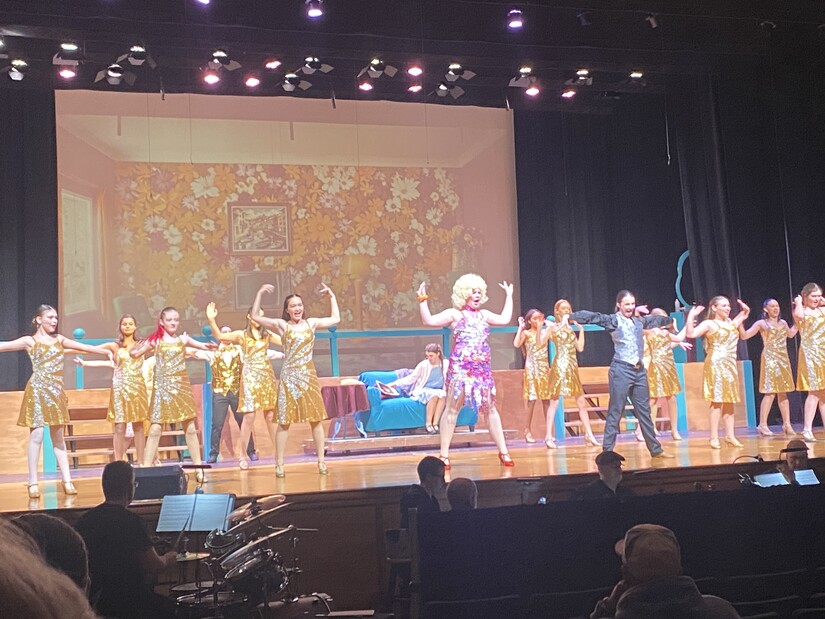 Photo by Westwood Minute/Darlene Wong Cancell. Mrs. Wormwood (Annie Goodman, center) is Matilda's showy, self-absorbed, and negligent mother.Catch upcoming performances of "Matilda" in the Westwood High School auditorium on Friday, April 10 at 7:00 p.m. and Saturday, April 11 at 2:00 p.m. Tickets are available online from Ludus.